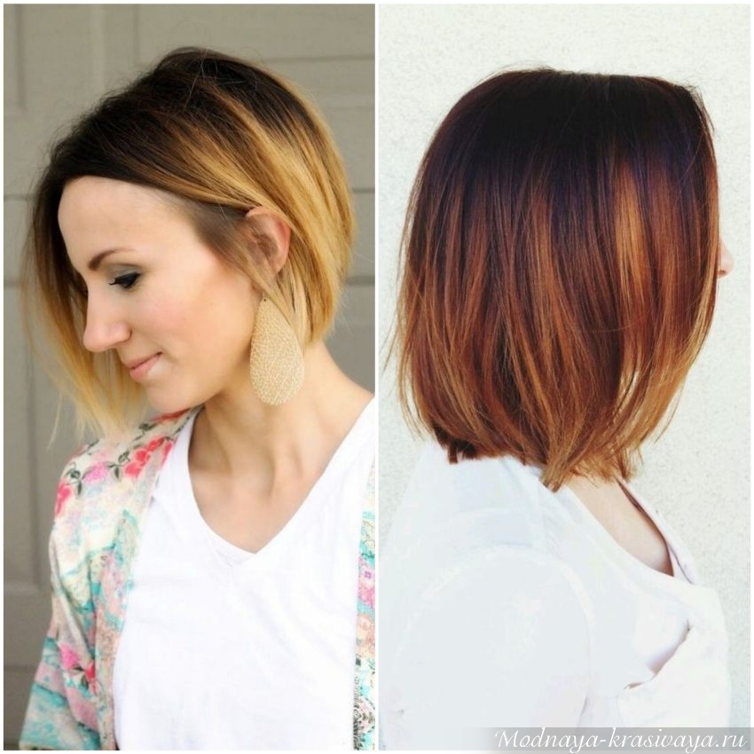 - Обладательнице стрижки до плеч или подбородка подойдет классика, бликующий стиль или брондирование.