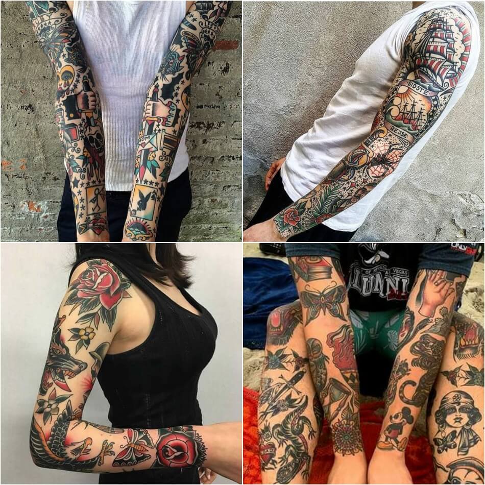 Несколько вариантов татуировки рукава в стиле олд скул