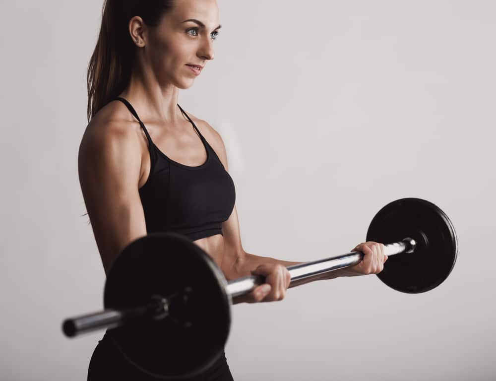 - подъем штанги узким хватом – данное упражнение необходимо выполнять стоя. Благодаря узкому хвату, вы лучше сможете прокачать мышцы бицепса. Изогнутая модель штанги позволяет значительно снизить нагрузку на спину и запястья. Выполняйте данное упражнение в 4 – 5 подходов по 15 повторений. Вес вы самостоятельно можете увеличивать, как только чувствуете, что выполнять подходы вам легко;