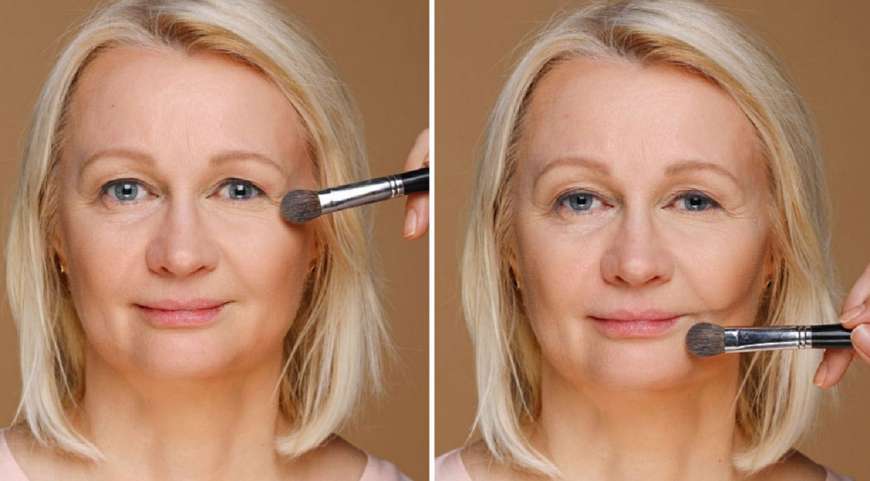 Женщина старшего возраста затрачивает больше времени на процедуры ухода за кожей. Правила нанесения макияжа для женщин старше 45 лет следующие: