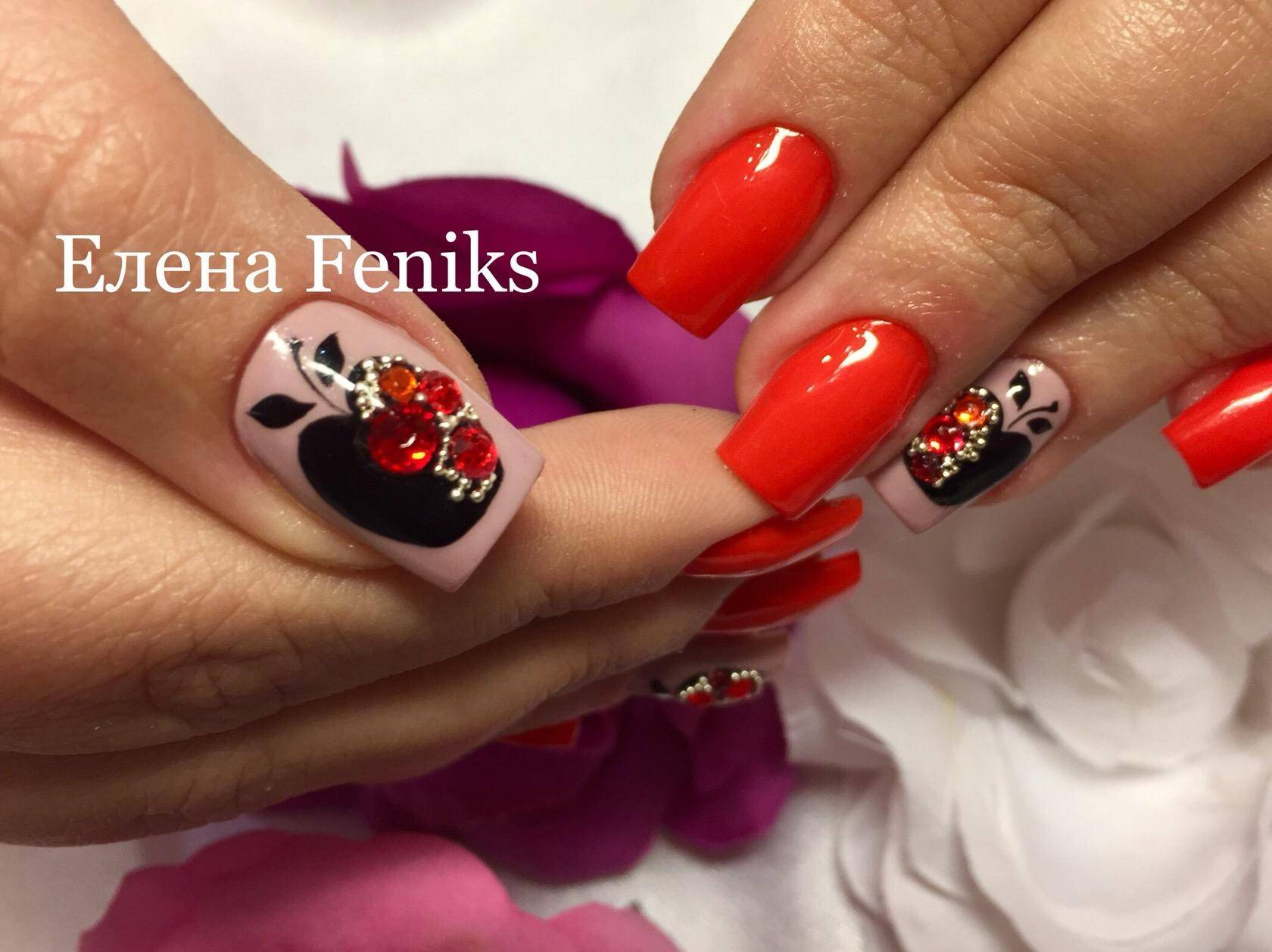 Модные новинки маникюра в оранжевых тонах со стразами