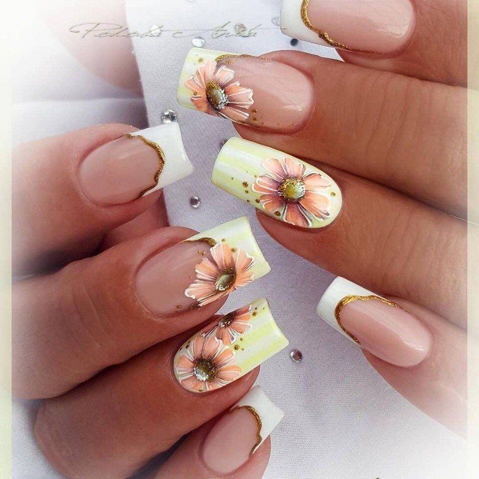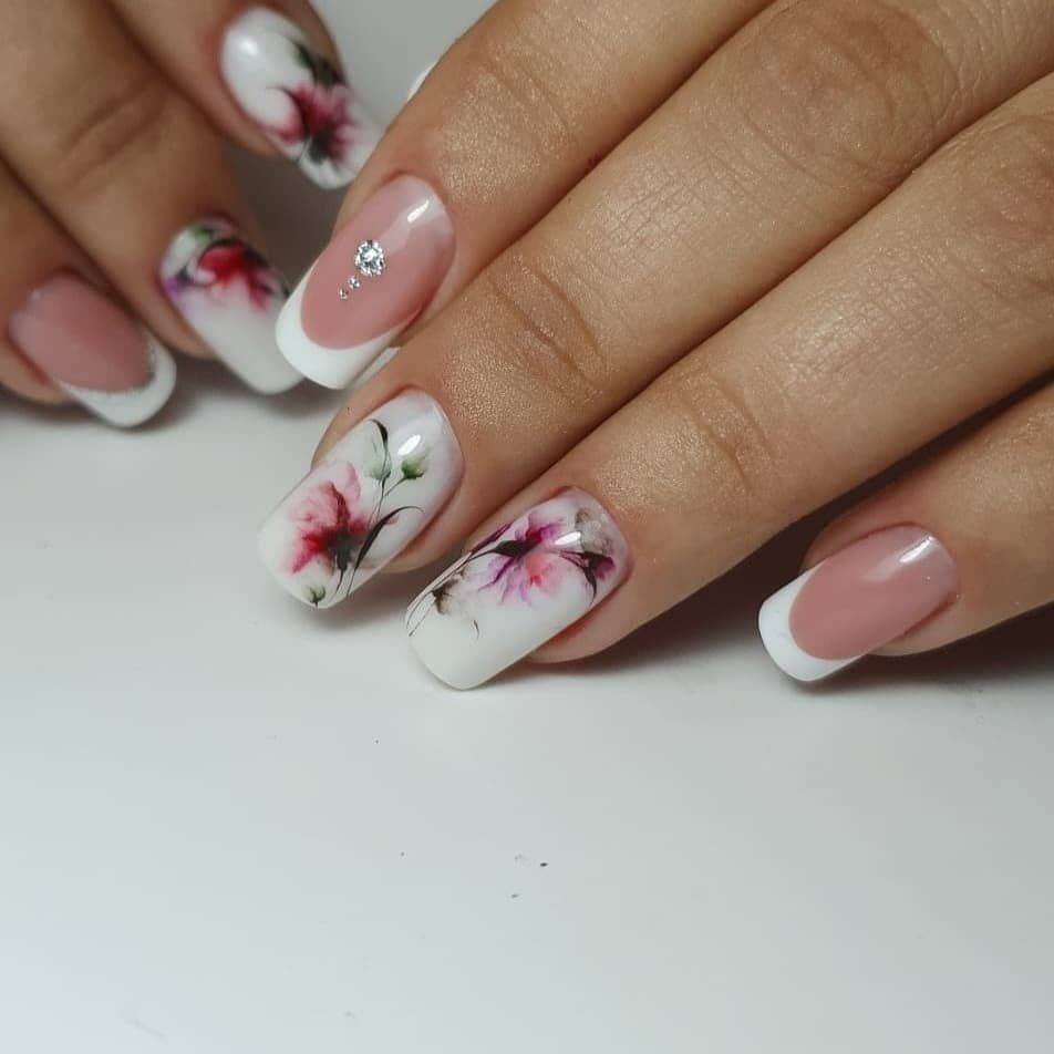Цветочный маникюр весна 2021 в технике френч