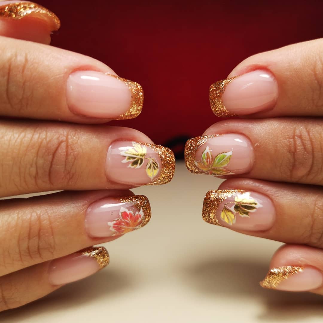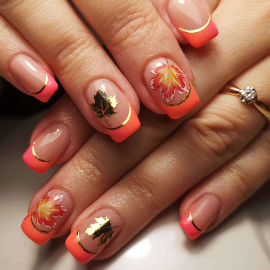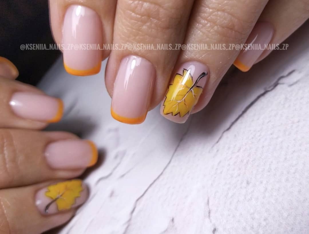 ВАЖНО! Рисуя листья на ногтях вспомните, какие оттенки они имеют в осенний период. Смешивайте несколько оттенков, чтобы получить максимально приближенный к естественному цвет