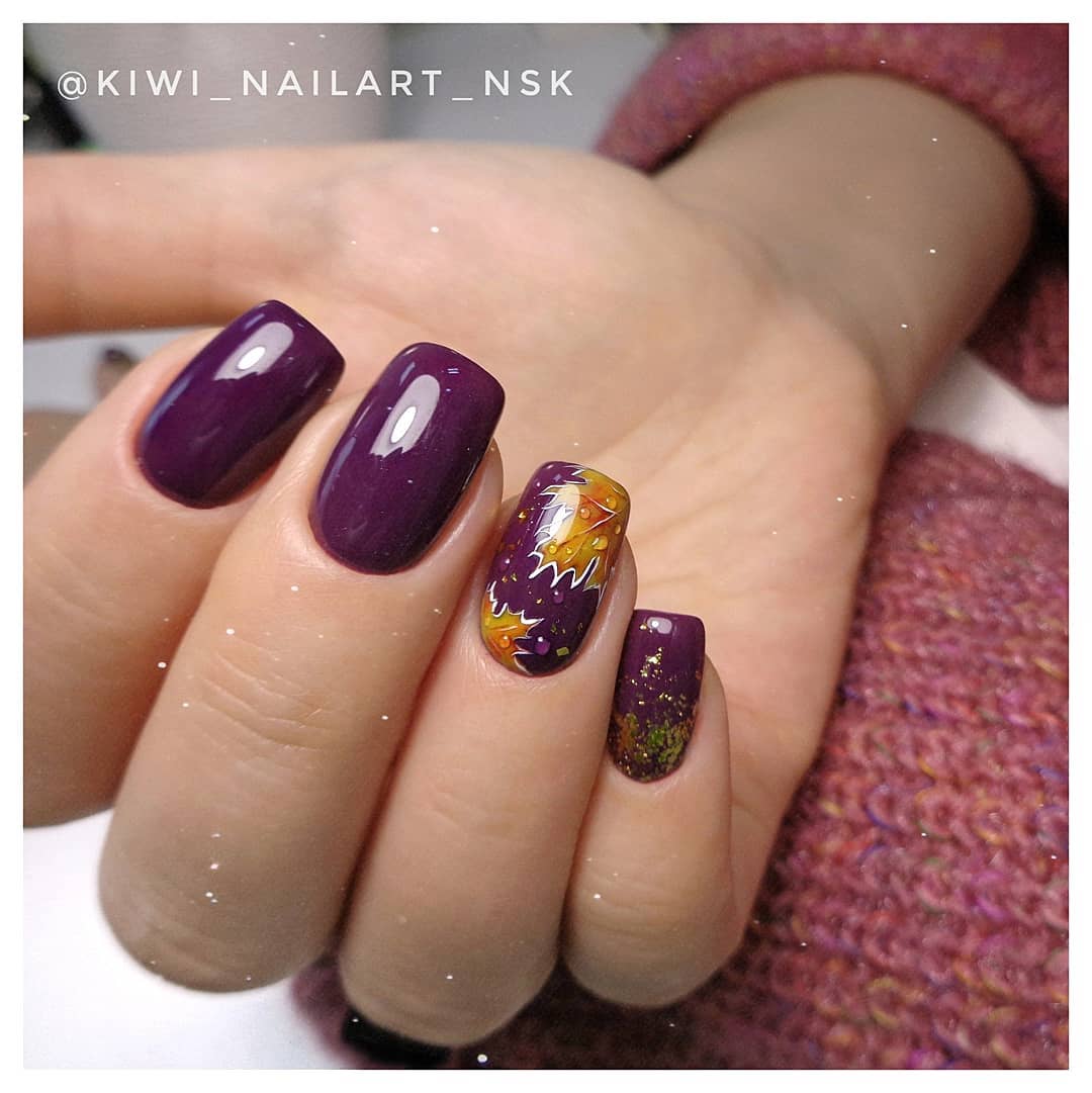 Осенью 2021 года маникюр можно дополнить поролоновым дизайном ногтей в лучших цветах сезона: бордовом, синем, черном и фиолетовом.