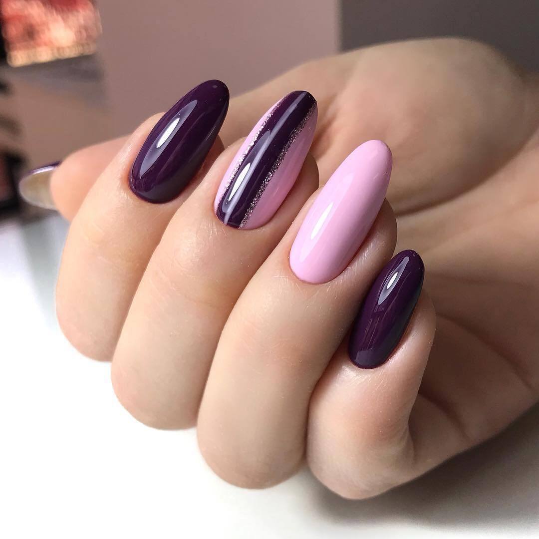 Такой маникюр сейчас очень актуален для поклонниц тёмных оттенков на ногтях.
