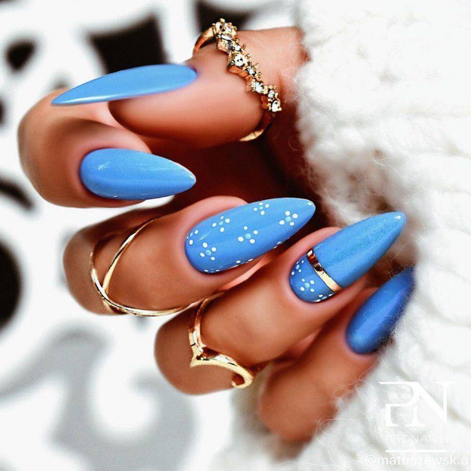 Самое гармоничное решение однотонного покрытия зимой — это нюдовые оттенки (голубой, розовый, молочный, бежевый). Они подходят для повседневной жизни и хорошо смотрятся в холодное время года.