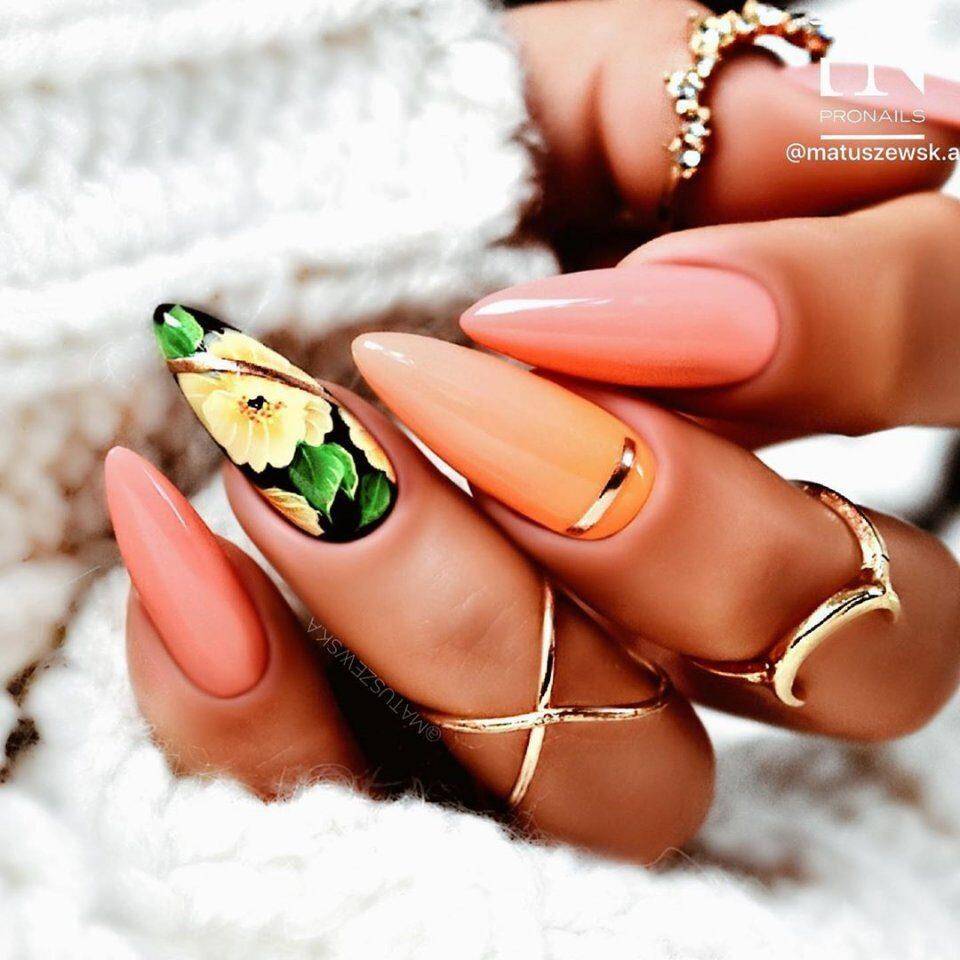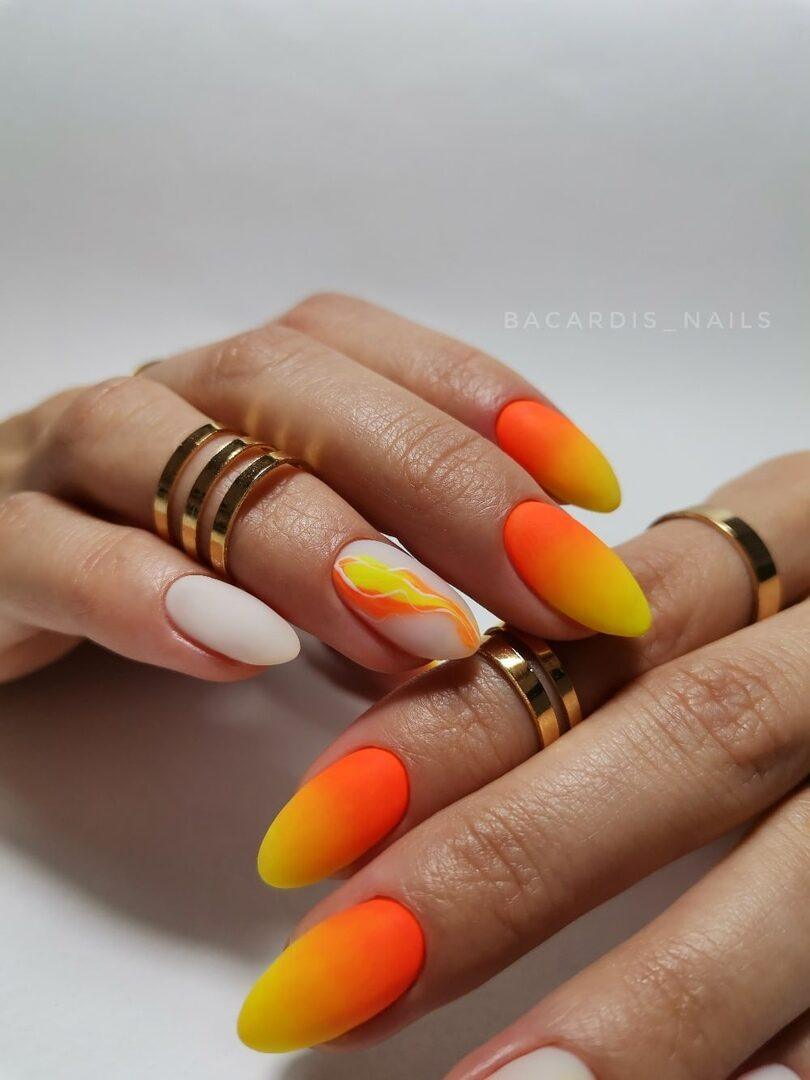 Маникюр оранжевым и желтым лаком, новинки 2021