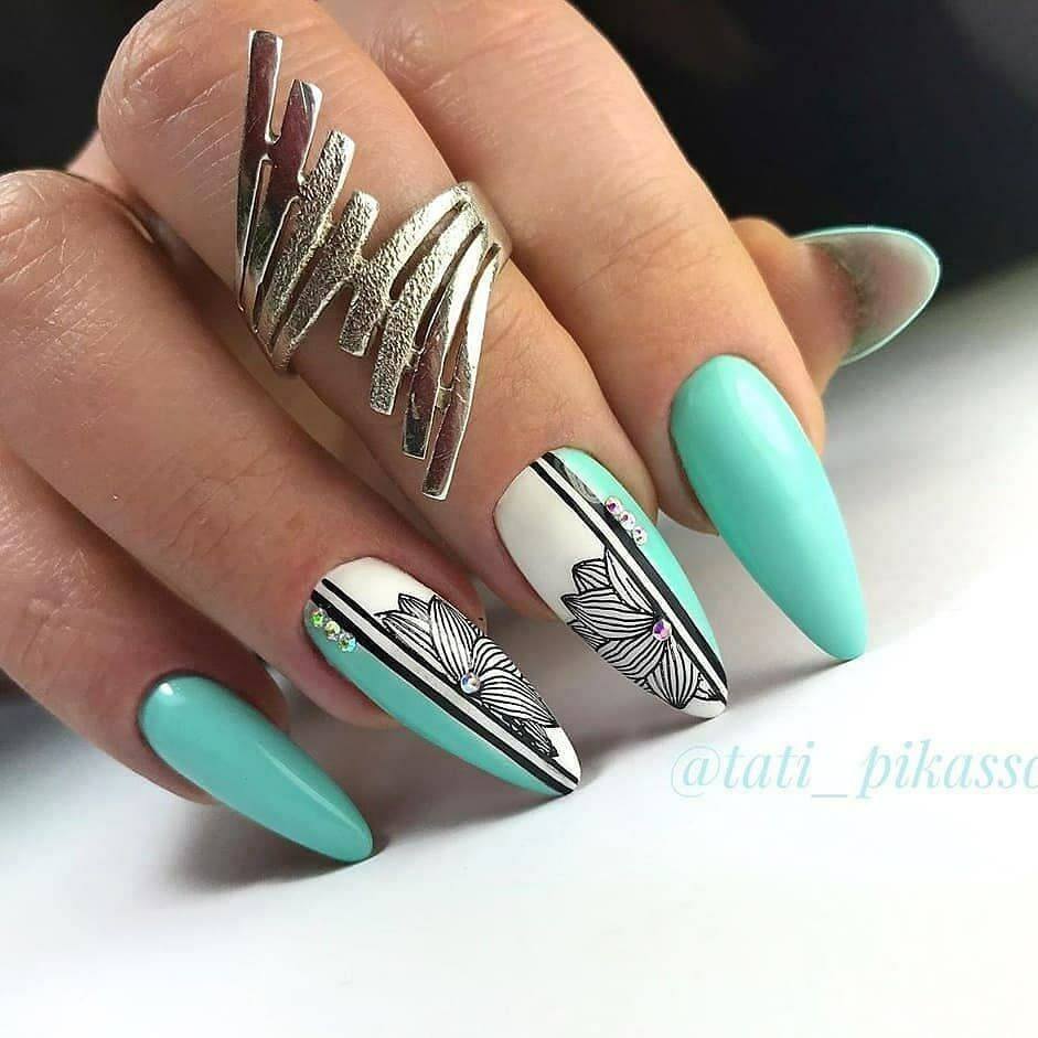 Оригинально и необычно будет смотреться как монохромный нейл-арт, так и ногти с дизайном рисунков.