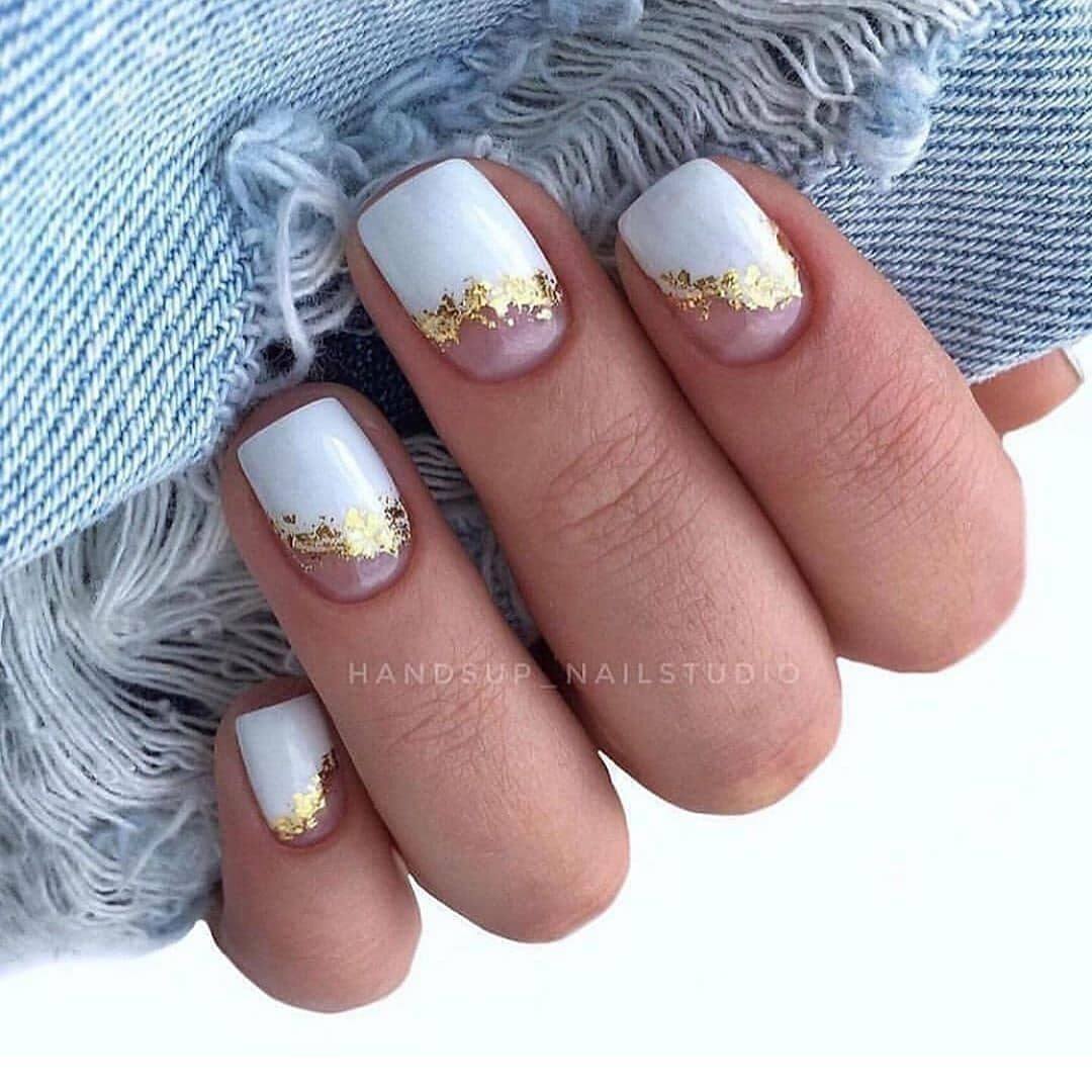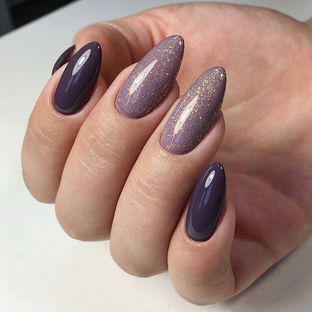 Чтобы маникюр выглядел модным осенью в 2021 году, прекрасно подойдёт золотой цвет, а также медный и бронзовый. Уместно применение фольги, страз или блёсток. Эти мелкие детали великолепно блестят в свете солнечных лучей. В качестве альтернативы можно использовать лак с перламутром и наполнителем.