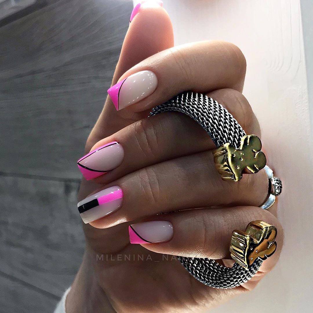 Мастера ногтевого дизайна в 2020 году экспериментируют с цветом линии улыбки и сочетают необычные цвета между собой. Популярным вариантом является градиентная версия без четкой переходной линии, для любителей минимализма.