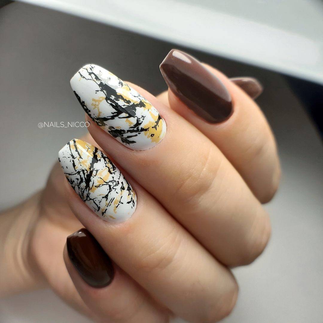 Отлично выглядит маникюр с дизайном «битое стекло». Данная идея ежедневно набирает всё большую популярность.