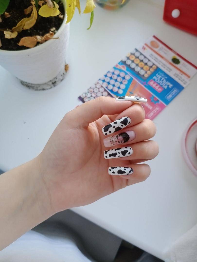 Эффектно смотрится на более длинных ногтях. Но это не означает, что обладательницы