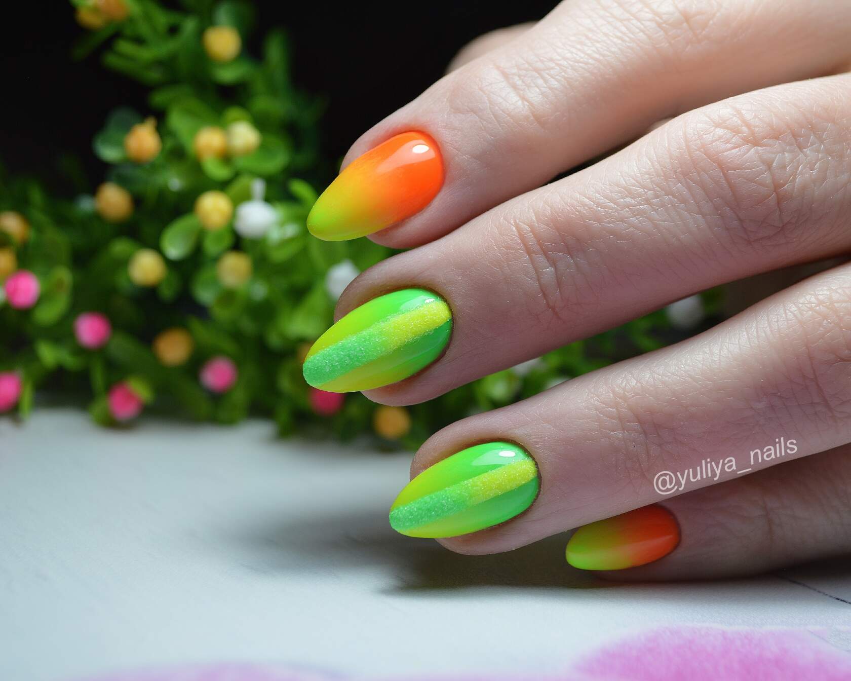 Яркие цвета в технике градиента – именно то, что так популярно летом. Сочетание красоты и солнечного настроения.