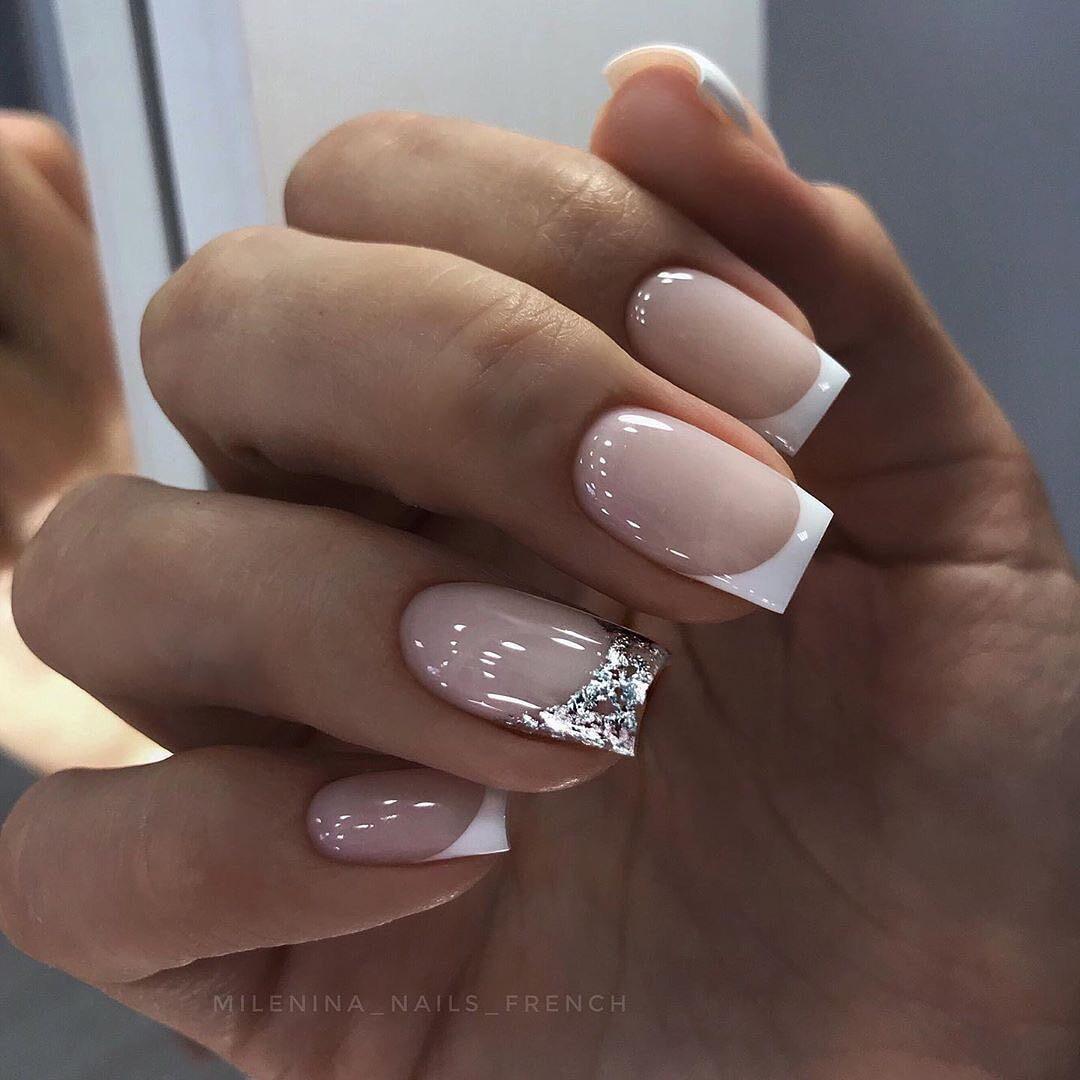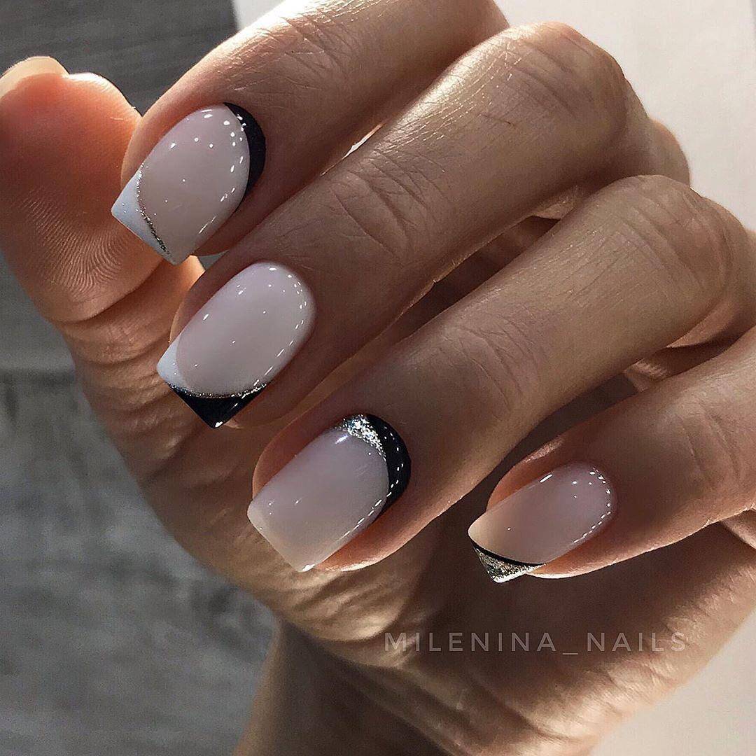 Выбирая французский маникюр, не забывайте, что для такого маникюра вы можете выбрать любую форму линии улыбки. Самые выигрышные цвета для французского маникюра сезона осень 2020 — черный и белый, но и синий выглядит великолепно и марсаловый и даже зеленый! Классический белый также никто не отменял, самые красивые идеи френча, смотрите в нашей фотоподборке 2020 года: