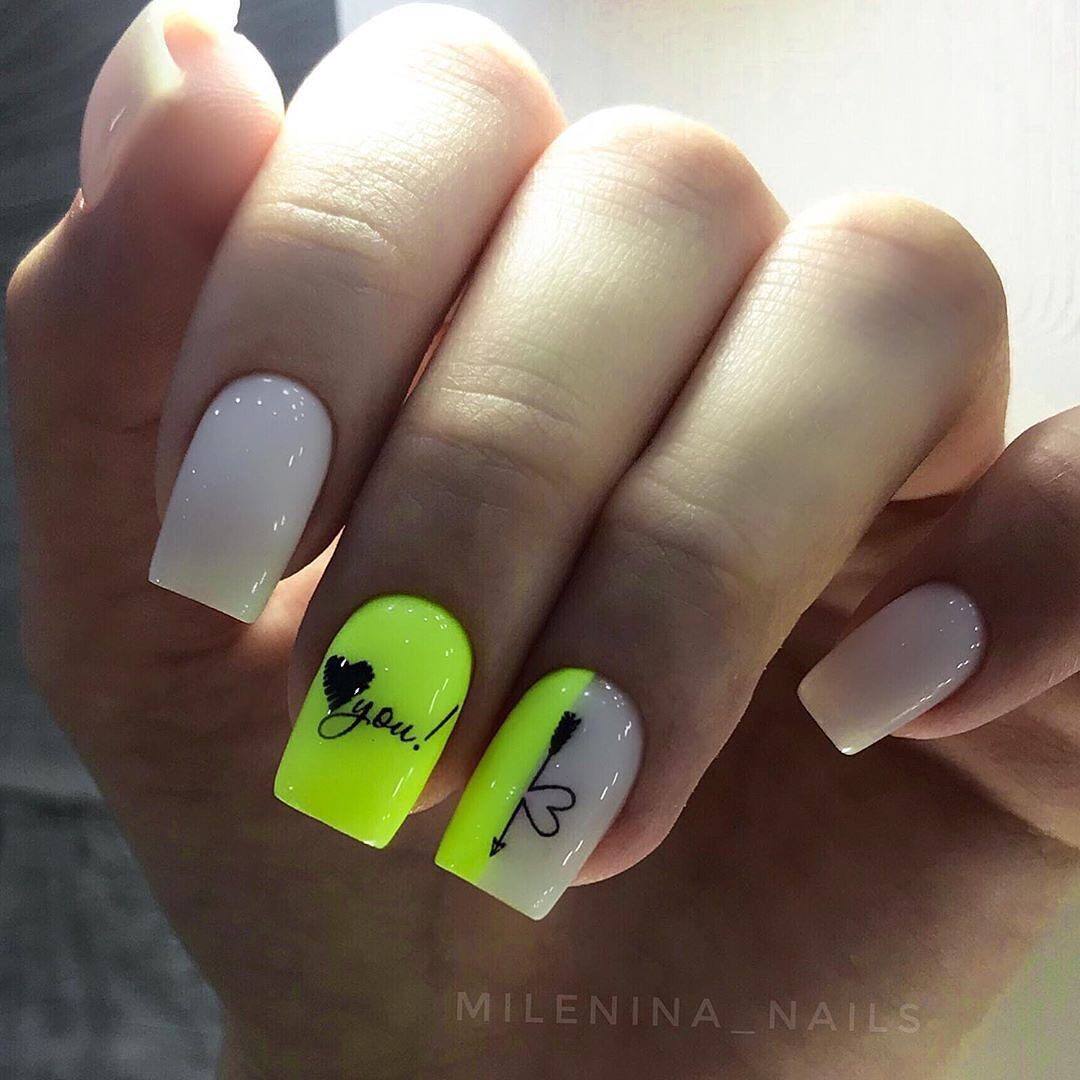В летний период в тренде сочные, яркие, неоновые тона. Модным исполнением на однотонном покрытии будет дизайн с различным декором.