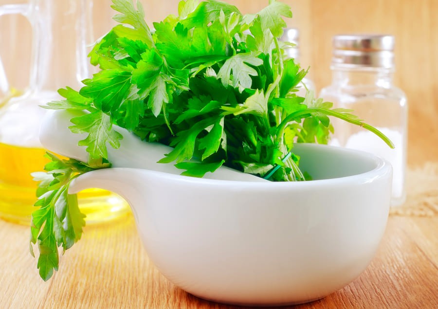 Необходимо вымыть 100 г петрушки, мелко порезать и положить в эмалированную кастрюлю, при этом заливая ее литром кипятка. Поставить на маленький огонь и кипятить не больше 10-ти минут. Выключить огонь, подождать пока смесь остынет, процедить, и использовать в целях протирания кожи ежедневно утром и вечером. Тоник хранить в холодильнике и каждые 3 дня делать новое средство. Кожа отбелится за 3 недели, а общий вид лица станет намного свежее.