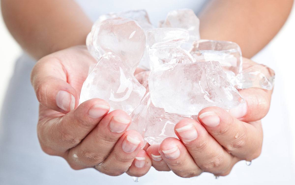 - холодные компрессы с водой или чаем, обтирание кубиком льда;
