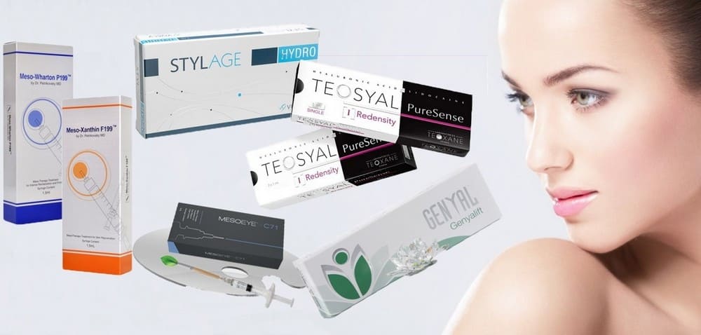 - Viscoderm – 0,8 %, 1,6 %, 2 % (Италия). Содержит синтетическую нестабилизированную кислоту, хлорид и фосфат натрия, дистиллированную воду. Благодаря широко представленной линейке подходит для решения различного рода проблем и введения в разные слои дермы.