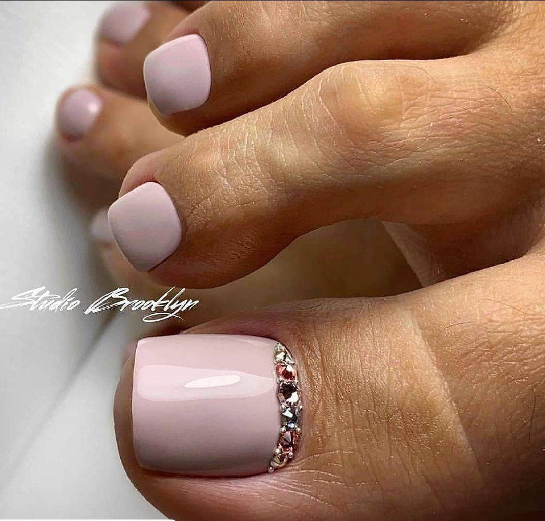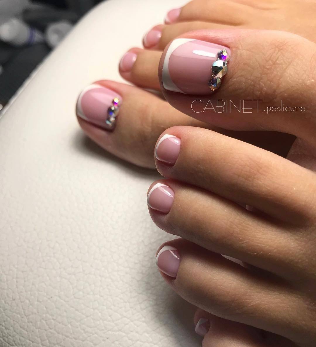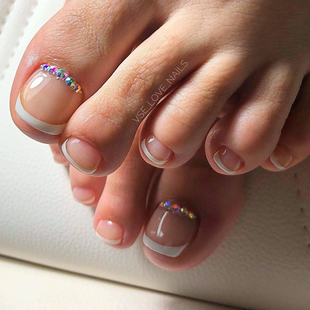 А дополнив такой дизайн стразами или рисунком вы сделаете ваш педикюр более изысканным.