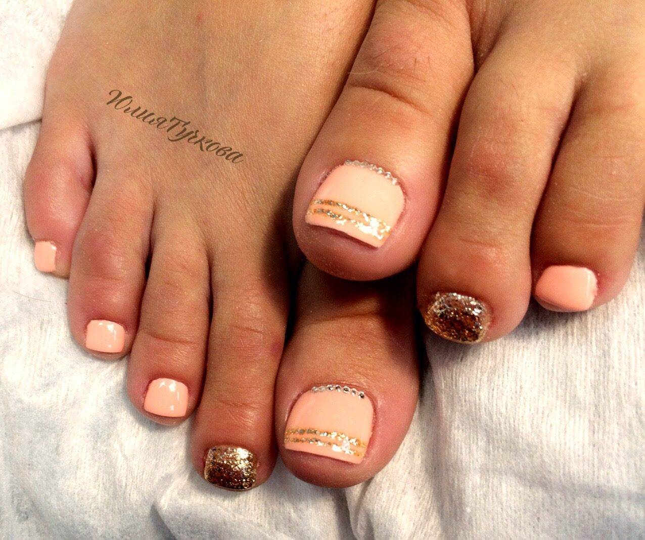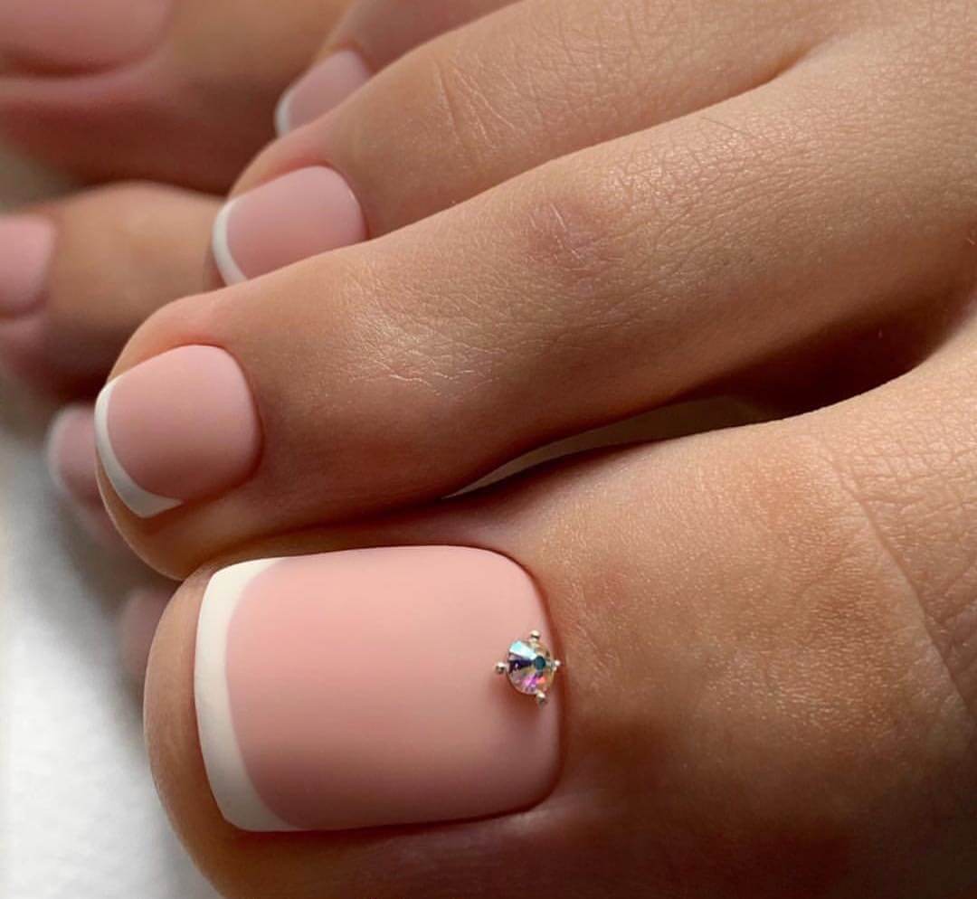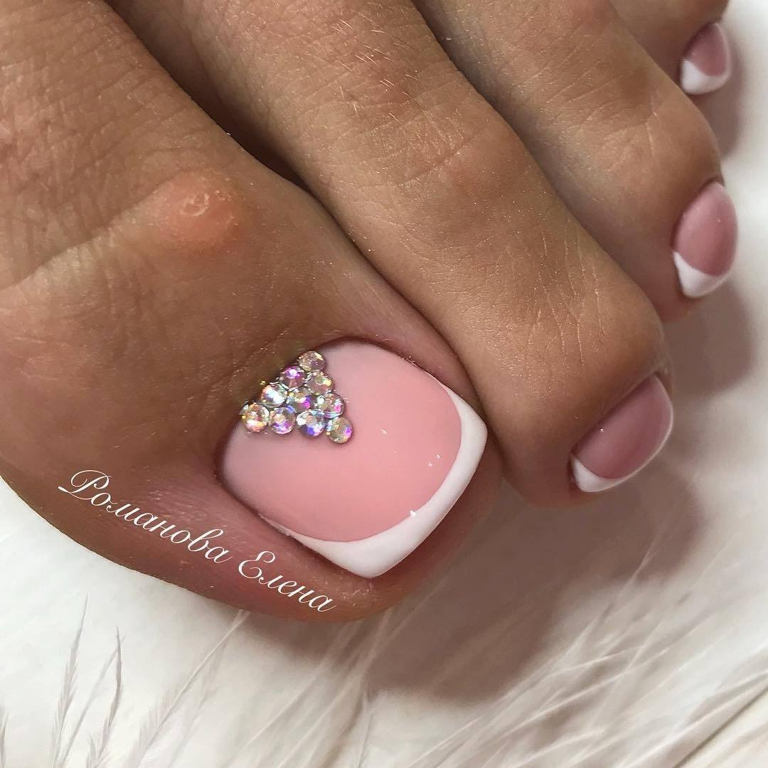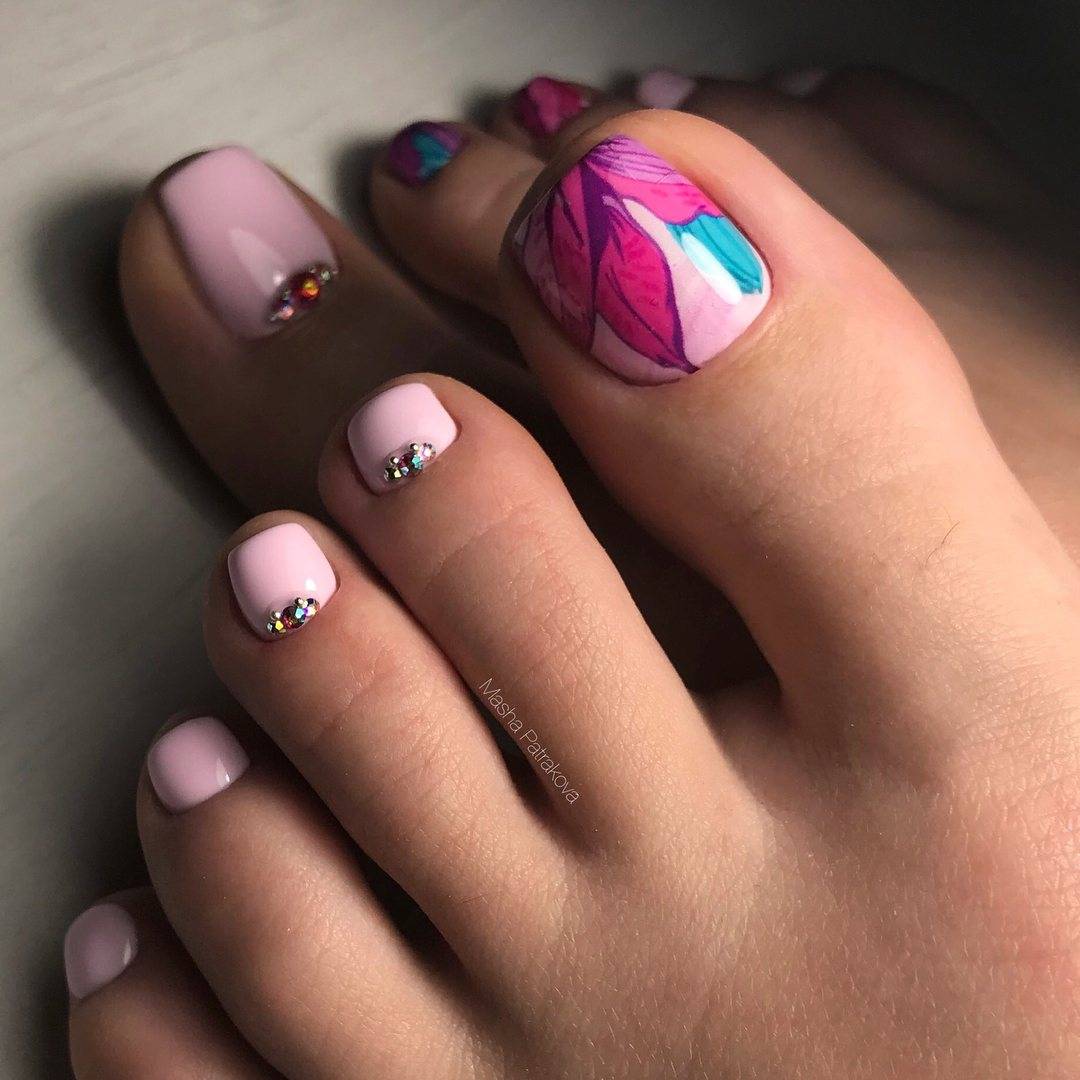 А дополнив такой дизайн стразами или рисунком вы сделаете ваш педикюр более изысканным.