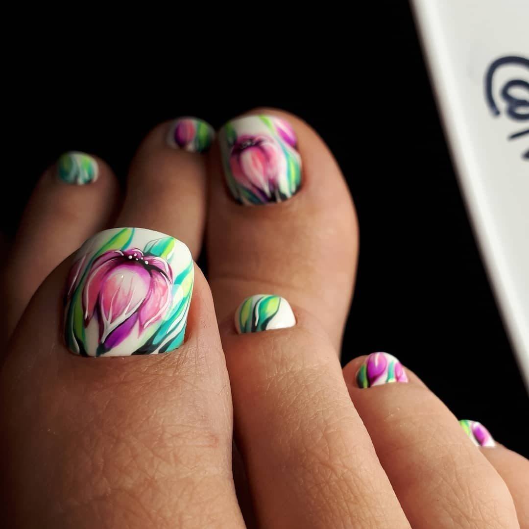 При создании дизайна педикюра sweet bloom используйте много ярких цветов. Чем больше оттенков вы возьмете, тем эффектнее и ярче будет результат.