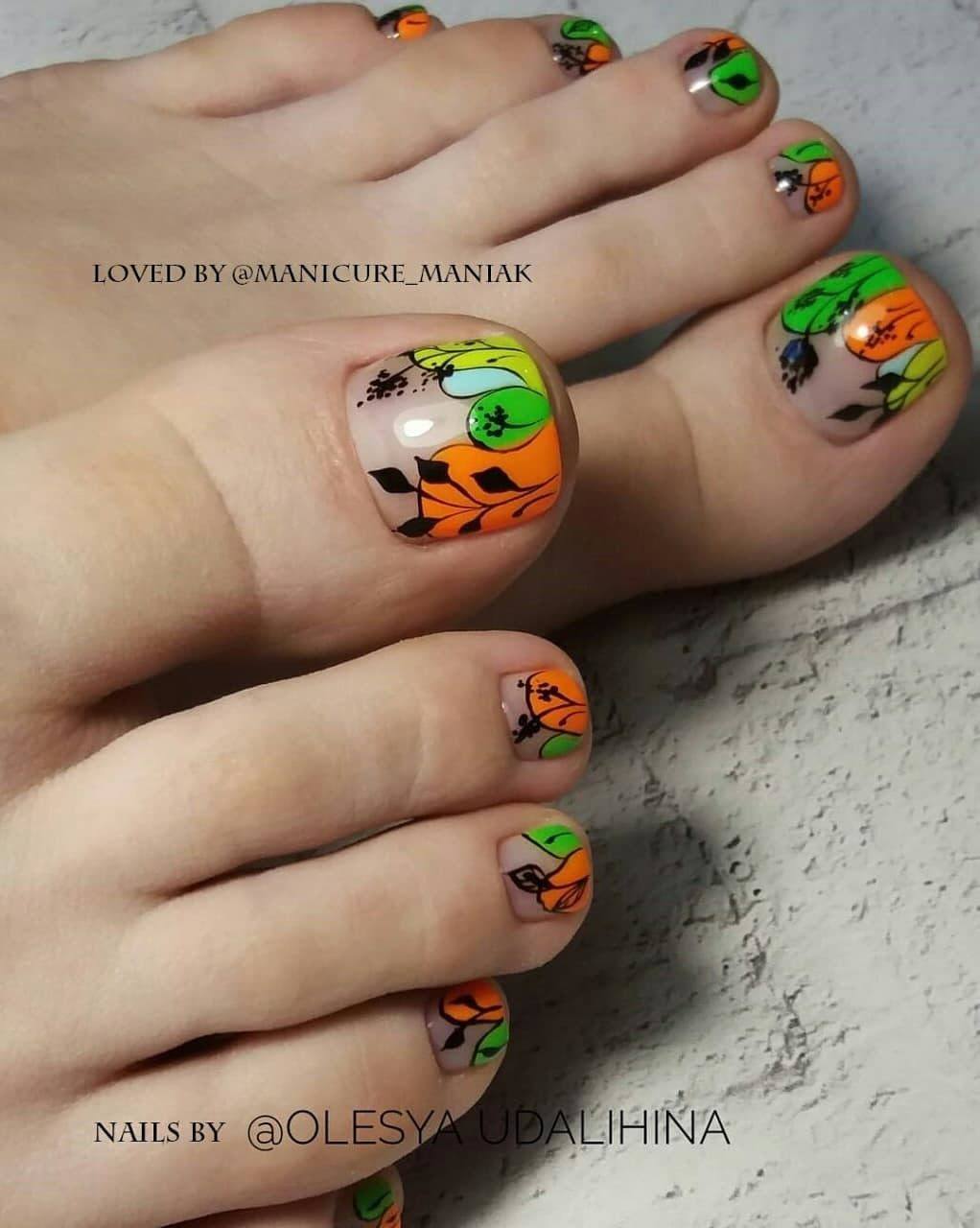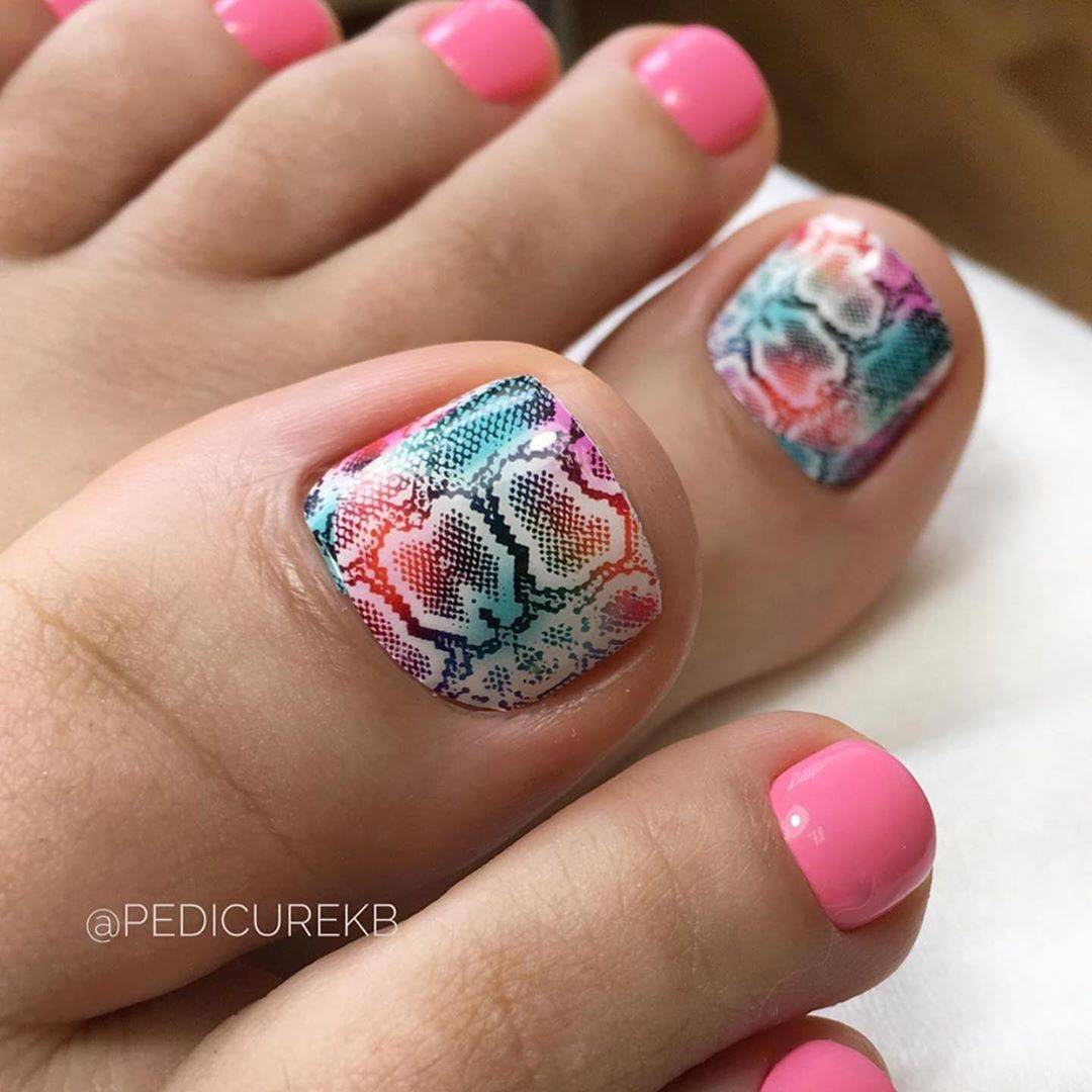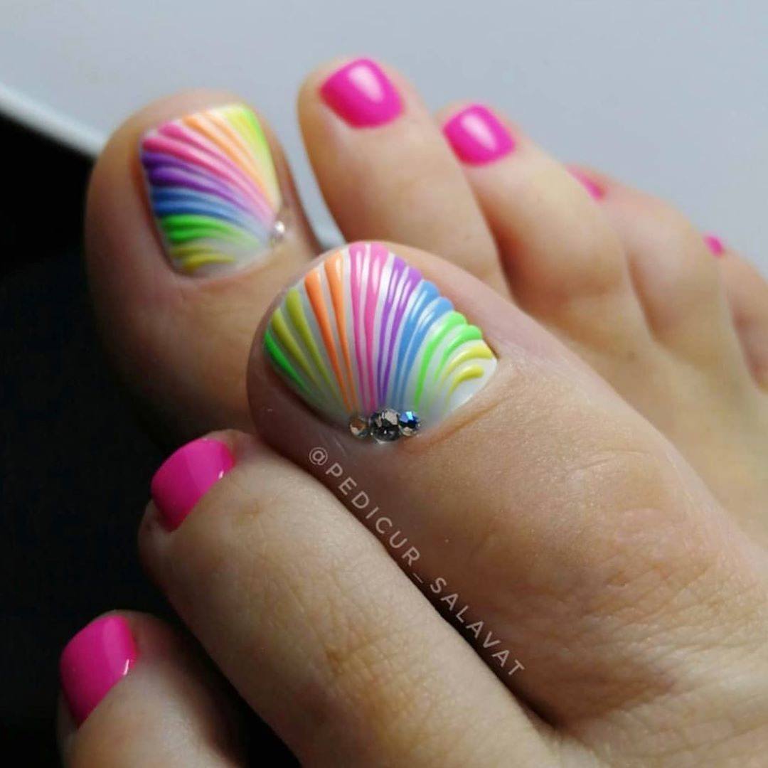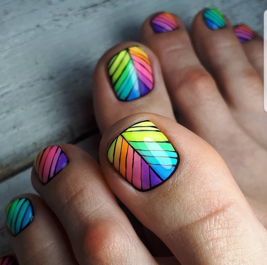 Радужный педикюр дизайн