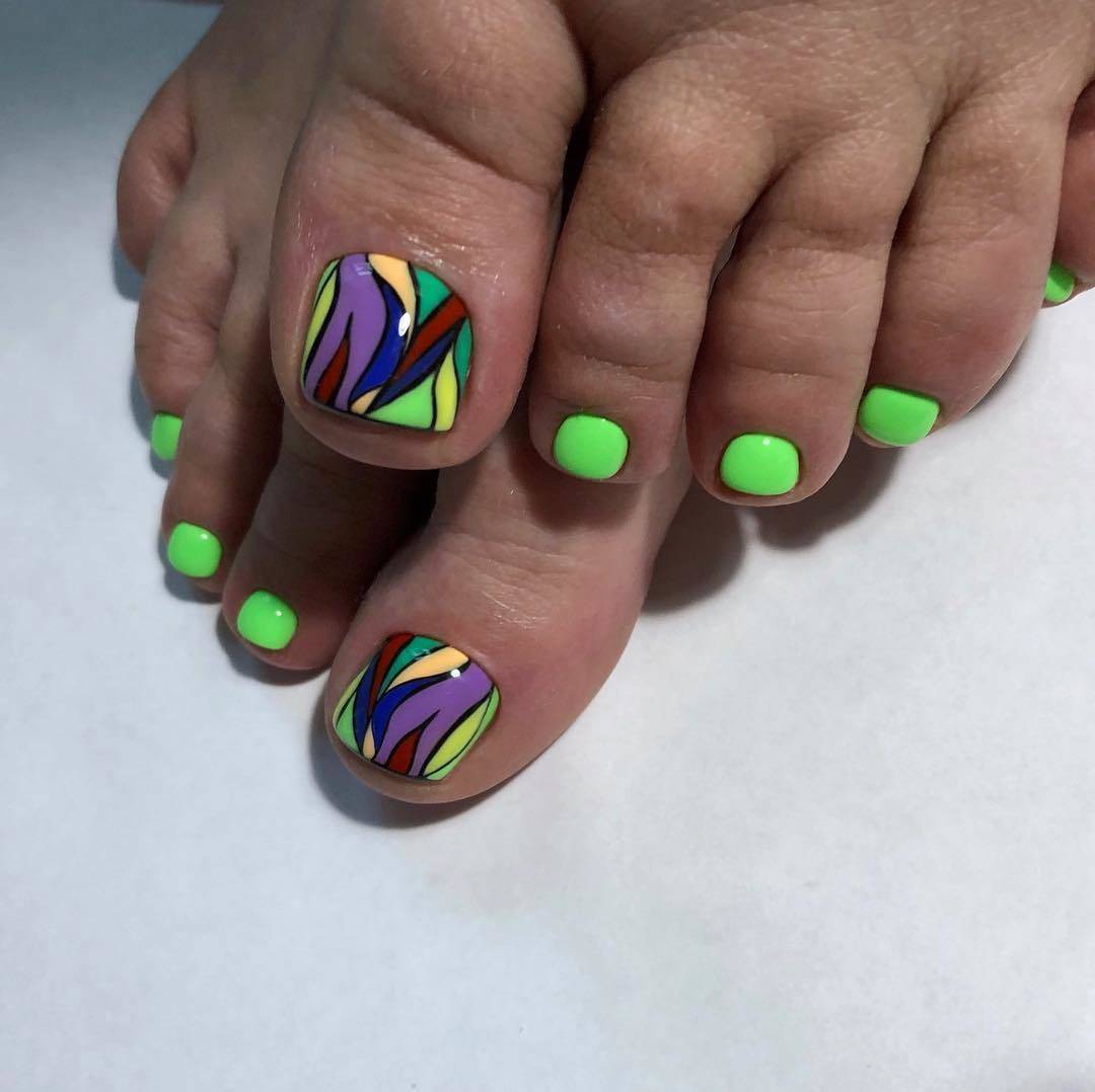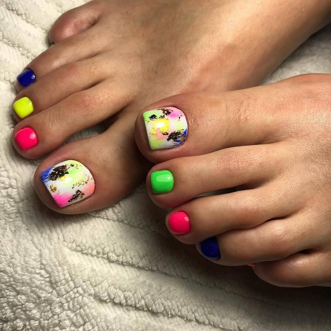 Модный педикюр на лето 2019 представляет собой яркую палитру из насыщенных и броских цветов. При этом каждый ноготь можно покрывать лаком разного оттенка. Чтобы педикюр не выглядел аляповато, лучше использовать не более 4-х разных цветов.