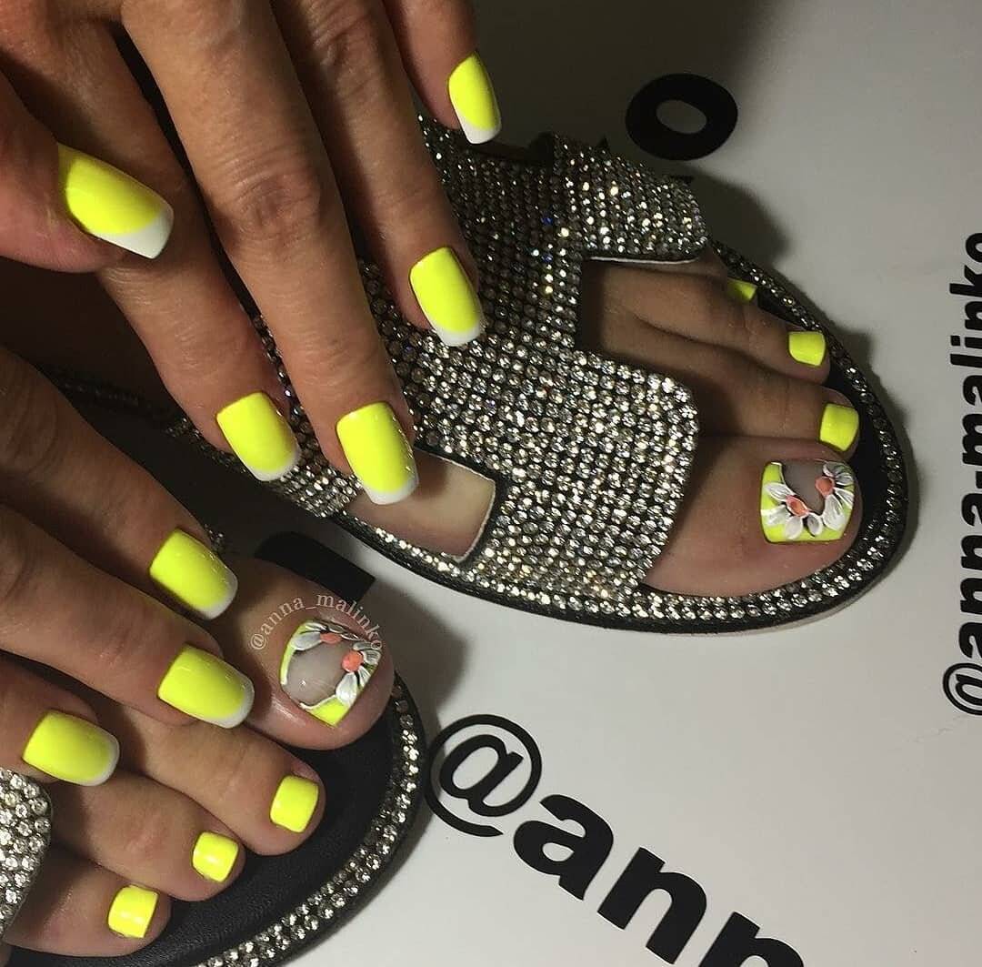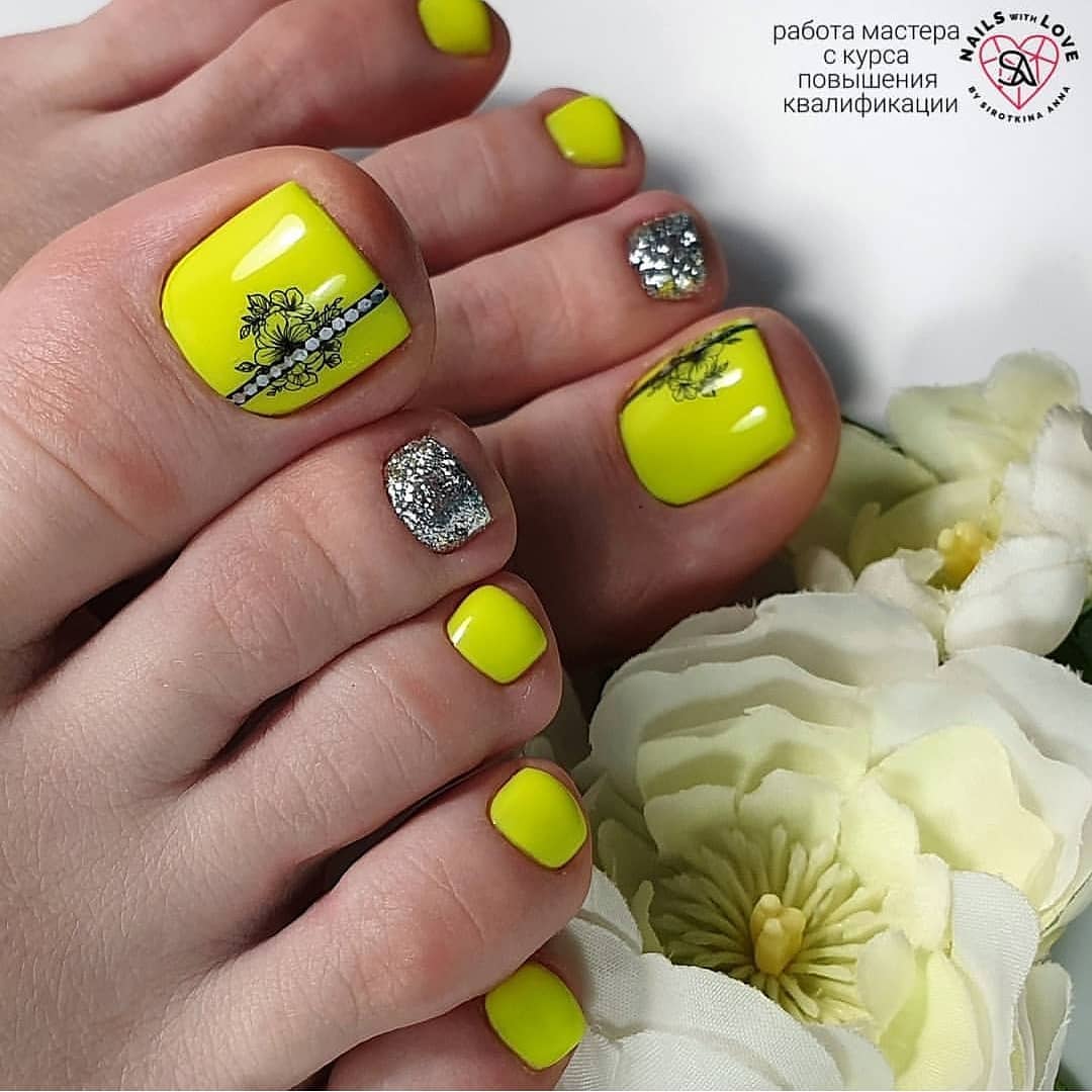 Желтый. Это настоящий тренд лета 2020 года. Желтый ассоциируется с ярким солнцем, счастьем и весельем. Вы можете разбавить однотонное покрытие красивыми тропическими, фруктовыми или морскими мотивами. Также интересным вариантом станет желтый французский педикюр.
