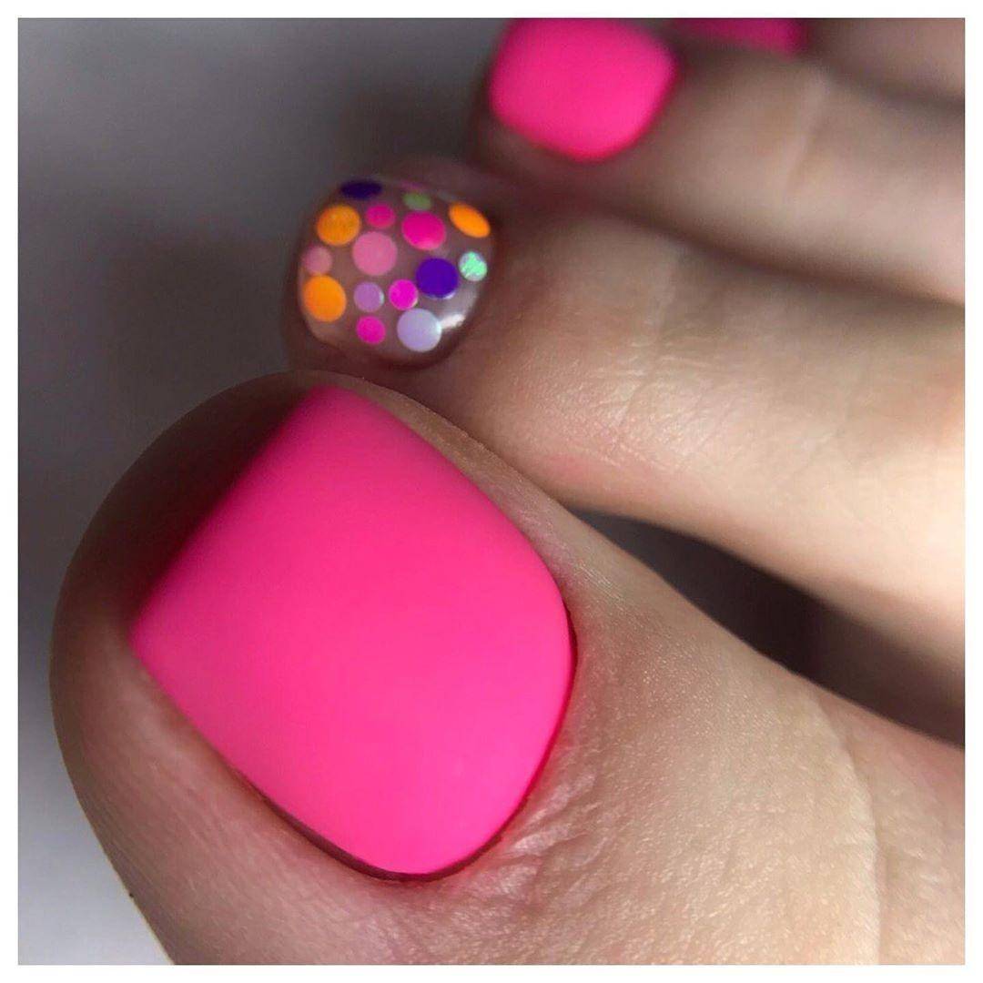 Также актуален будет однотонный педикюр, выполненный в ярких неоновых оттенках.