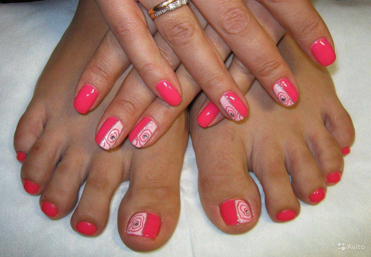 Имеет смысл совместить процедуры педикюра и маникюра шеллак с тем, чтобы оформить ногти на руках и на ногах в едином стиле. Хотя нас и уверяют в том, что сегодня вовсе не обязательно и даже старомодно подбирать туфли и сумки одного цвета, а помада совсем не должна соответствовать цвету ногтей, однако хорошего вкуса никто не отменял. Привлекательным и элегантным вариантом может стать оформление ногтей на руках и на ногах в единой цветовой гамме с узором из страз, но со смещением, например, оттенков цвета или перекликающимся блестящим рисунком.