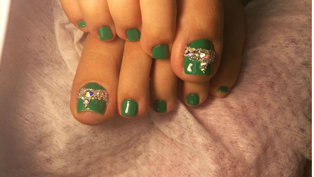 После всех этих процедур можно приступать к педикюру и украшению ногтей стразами.