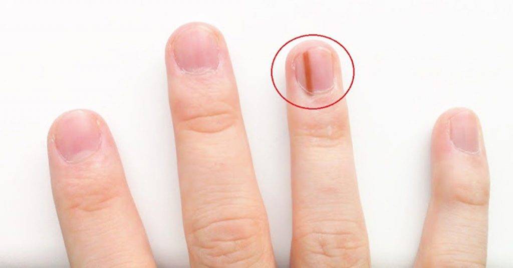 - Подногтевая меланома – грозное онкологическое заболевание, отличающееся агрессивным течением и способное уносить жизни людей. Для него характерно образование под ногтем темного пятна любой формы, полоски и т. д. Заболевание требует немедленного обращения к врачу.