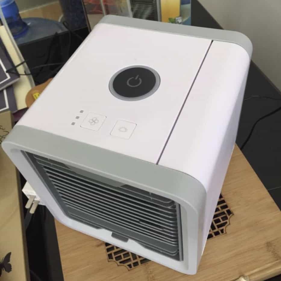 Есть также 3 скорости выдува. “Ветерок” холодит за счет холодной воды, заливаемой в резервуар. Для большего эффекта можно добавлять в эту воду лед, тогда девайс работает как настоящий кондей.