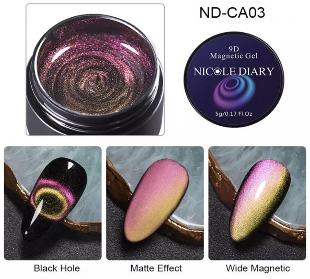Магниты нужно приобретать отдельно. При взгляде на ноготь под разным углом узор меняется, создается 3D-эффект. Ниже представлен топ лучших магнитных лаков на Алиэкспресс.