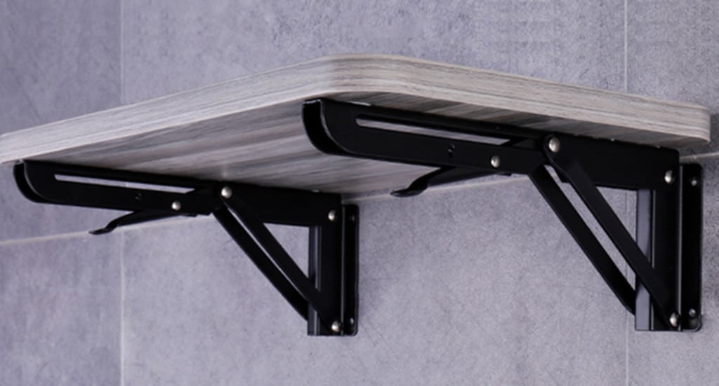 Металлические опорные кронштейны дадут возможность изготавливать надежные полки и столы требуемого размера с довольно большой грузоподъемностью.
