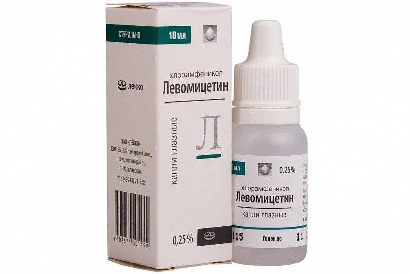 В ряде случаев без медикаментозных средств не обойтись. Они призваны не только очищать конъюнктивные мешки от скопления гноя и устранять красноту, но и ликвидировать патогенные бактерии. Самые эффективное и вместе с тем безопасное средство — капли Левомицетин. В их основу заложено химическое вещество, проявляющее противомикробную активность. Капли назначают, если доказано, что проблема спровоцирована именно образованием на слизистых оболочках колоний бактерий.