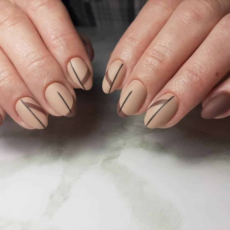 - модный матовый маникюр, украшенный глянцевым рисунком, например, каплей, горошиной, листочком, полоской в этом году на пике популярности;