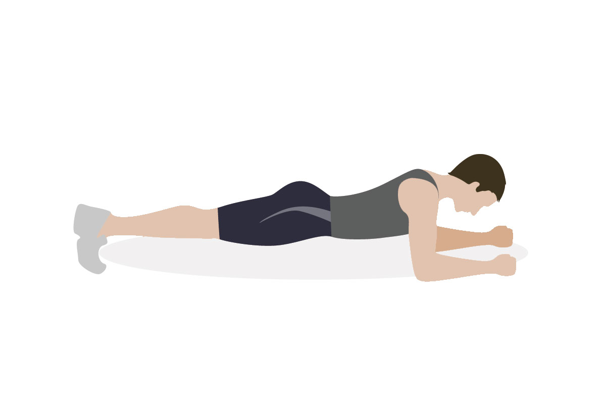 Упражнение на заминку и на развитие подвижности позвоночника. Лежа на полу животом вниз, за счет мышц спины поднимите верхнюю часть корпуса. Не отталкивайтесь руками, используйте их лишь для поддержки. Задержитесь в верхней точке, напрягая абдоминальные мышцы. 2-3 подхода по 30-60 секунд