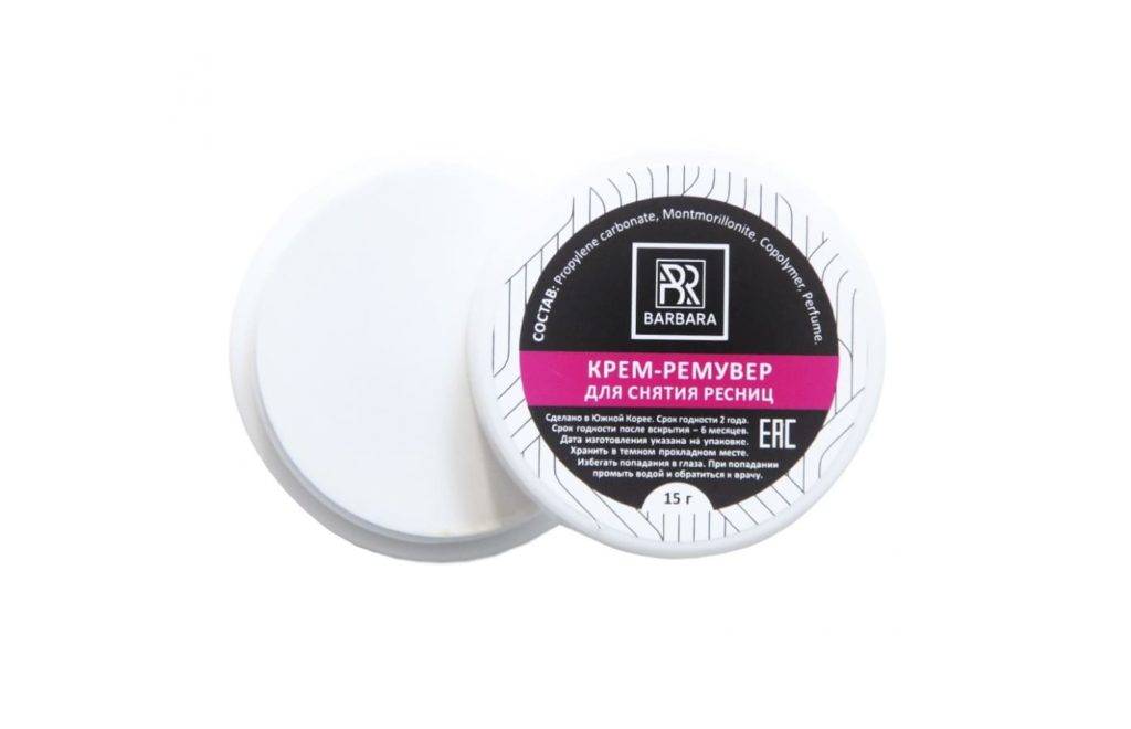 Ремувер. Специальный состав для снятия наращенных щетинок. По консистенции он напоминает нежирный крем или гель, наносится легко, не растекается. Перед покупкой необходимо обратить на состав ремувера: в нем должны присутствовать эфирные масла и другие не агрессивные компоненты. Могут различаться по времени воздействия: чтобы полностью растворить клей, средству необходимо 5-10 минут. Лучше всего приобретать состав, не содержащий ацетона.