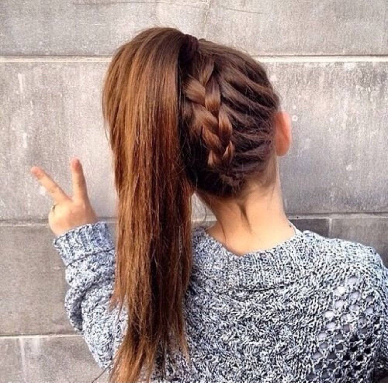 Наиболее удачно с хвостом сочетаются различные виды плетения кос. Тут уж нет предела фантазии. Делают плетение боковых прядей с соединением вместе, вплетают косы различных видов, выполняют вывернутые вариации.