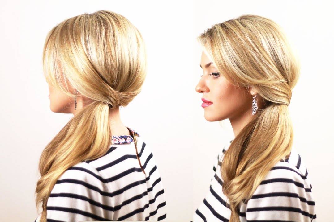 Другим простым и интересным решением будет создание хвостика на бок. Изящный женственный вид подойдет для любого случая. В зависимости от вашего настроения волосы могут быть как волнистыми, так и прямыми.