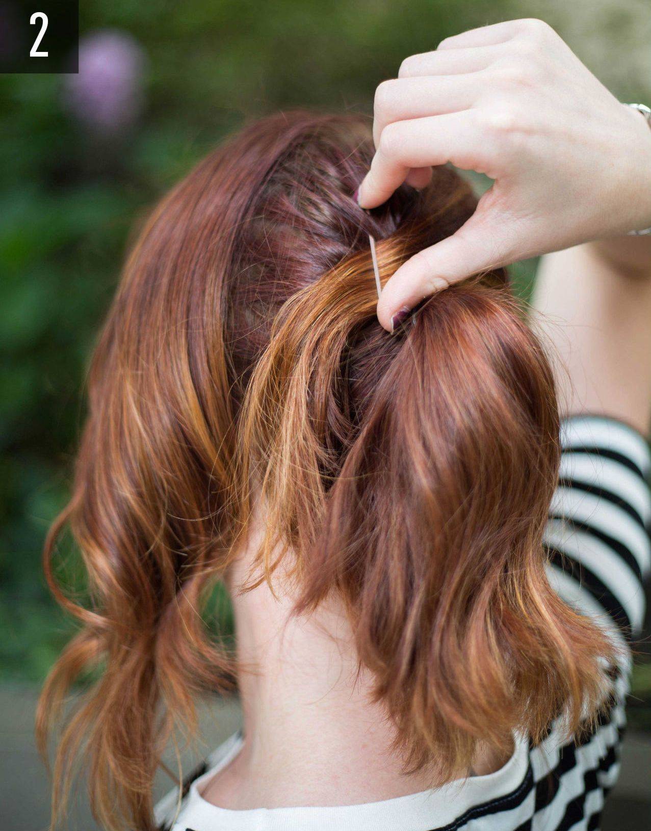 - Ту часть, где есть начес, подверните горизонтально валиком, закрепите локоны невидимками;