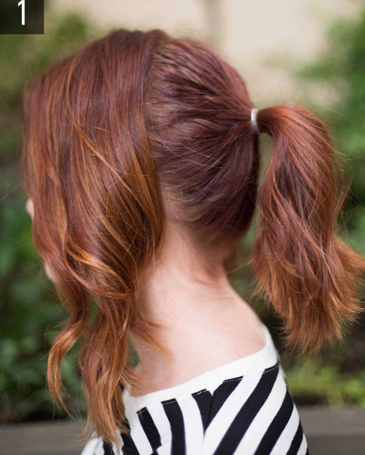 - Разделите сам хвостик на две части (при помощи горизонтального пробора).
