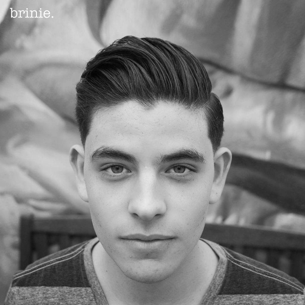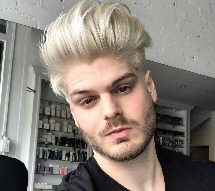 Модные прически для парней вроде помпадура сделать довольно легко. Здесь вопрос в другом: чтобы он держался, нужно ответственно подходить к укладке. Основа стрижки в том, что пряди вытягиваются прямо с лицевой зоны и при этом приподнимаются. Височная и затылочная области выбриты или укорачиваются. Классически это мужские стрижки с пробором, но можно попросить мастера обойтись и без них.