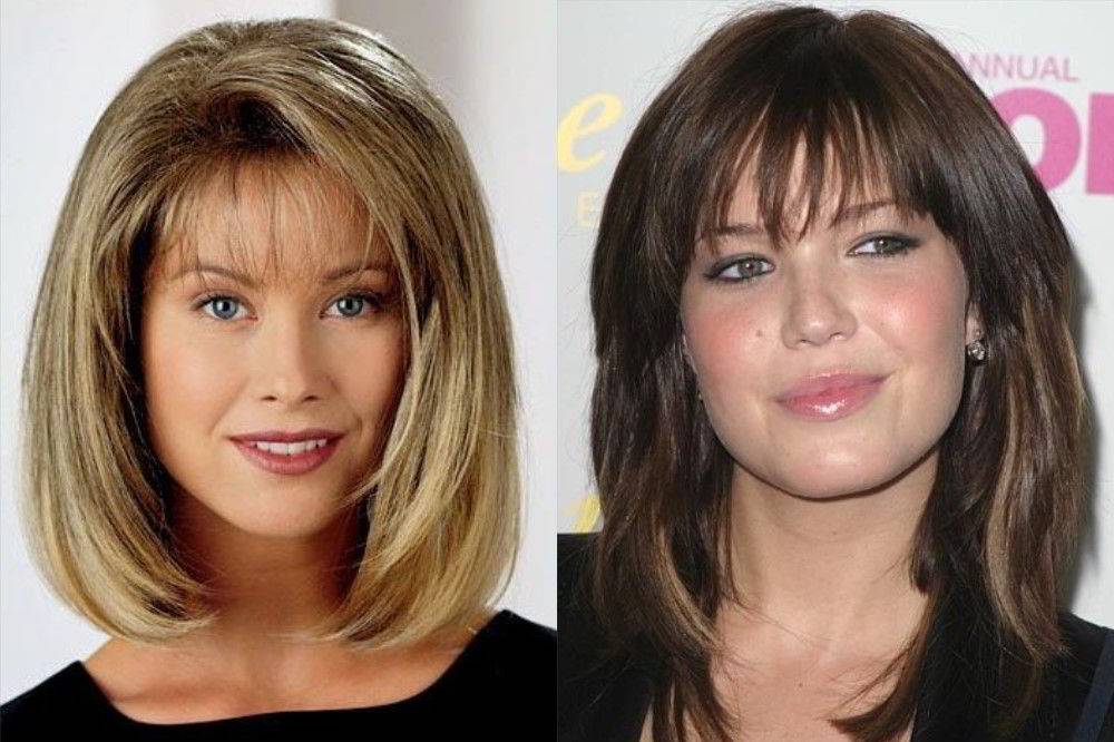 Шевелюра средней длины – самый лучший вариант для такого типажа. Она округляет щечки и делает образ утонченным, женственным и изящным. Убрать угловатость линий смогут каскадные стрижки – аврора, лесенка, каскад, удлиненный боб-каре. Локоны, подкрученные к лицу, маскируют широкие скулы и тяжелый подбородок. Также нужно сделать челку – она убавит длину. Кстати, для тонких волос каскадная техника также станет настоящим спасением.