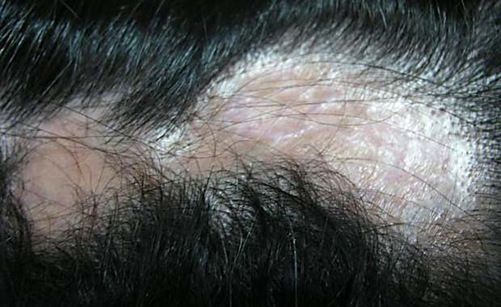 Этот вид облысения встречается достаточно редко. Зачастую рубцовое облысение развивается на фоне травм кожи головы, ожогов. Однако нередко причиной заболевания являются инфекционные заболевания кожи головы, в результате которых вокруг волосяных фолликулов образуются участки воспаления, вскоре трансформирующиеся в рубцовую ткань. Так, после фурункула, глубокого фолликулита, абсцесса на коже головы появляются рубчики, а иногда и участки атрофии.