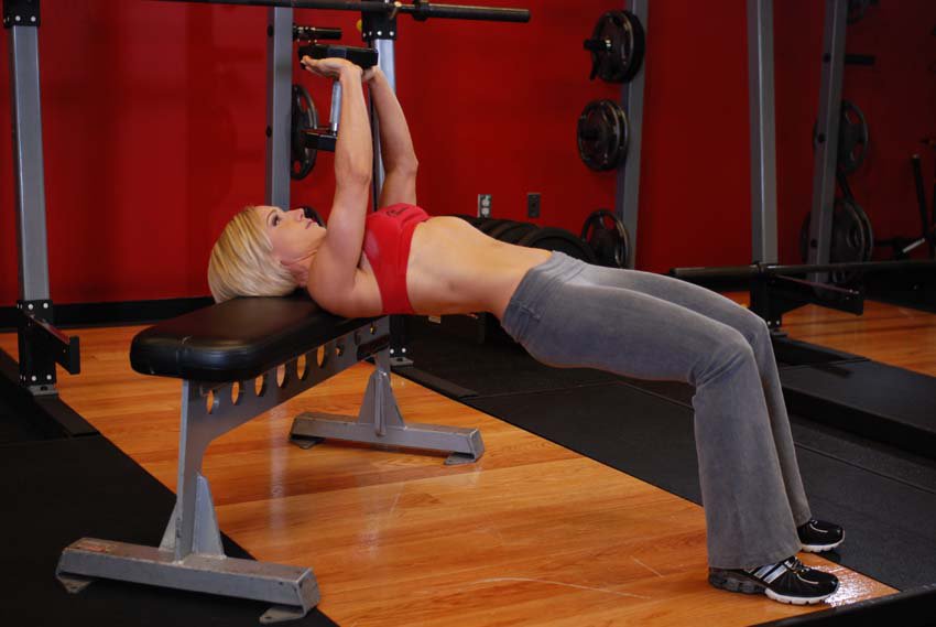 - Жим штанги на грудь – 10 раз в 3 подхода.