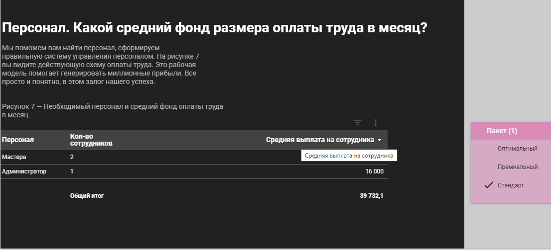 - Описательная часть. Она будет исходить из вашей концепции насчёт собственного бьюти-бизнеса, включает в себя: