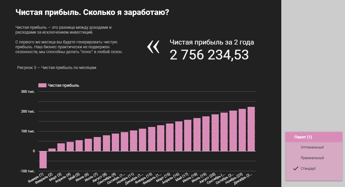 - окупаемость инвестиций — сроки. Этот пункт прорабатывается отдельно, если вы хотите привлечь к партнёрству других бизнесменов.