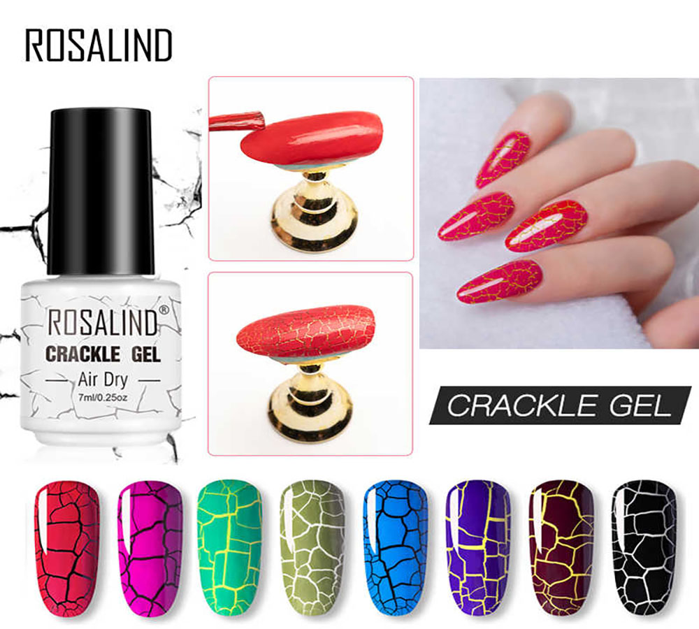 К продаже предлагается 12 оттенков такого кракелюрного лака, среди которых есть наиболее распространенные цвета: черный, белый, нежно-розовый и другие. В каждом флаконе по 7 мл лака. Для их высыхания не нужно использовать УФ или LED-лампу. В качестве базы лучше использовать цветной гель-лак: так маникюр будет дольше держаться. Трещины получаются мелкими и не сильно заметными.